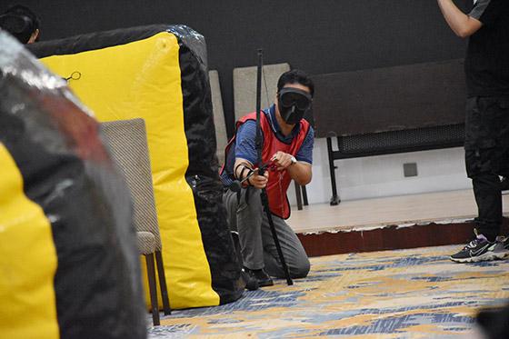 下午,在大家友好的互動(dòng)中,心理素質(zhì)拓展活動(dòng)開(kāi)始了?;顒?dòng)中,教練帶領(lǐng)大家依次進(jìn)行了團(tuán)隊(duì)建設(shè)、盲人互打和攻防箭道,在運(yùn)動(dòng)中感受團(tuán)體協(xié)作帶給個(gè)體的支持,在比拼中感受挑戰(zhàn)帶來(lái)的興奮,在笑聲中感受歡樂(lè)帶給心靈的放松。