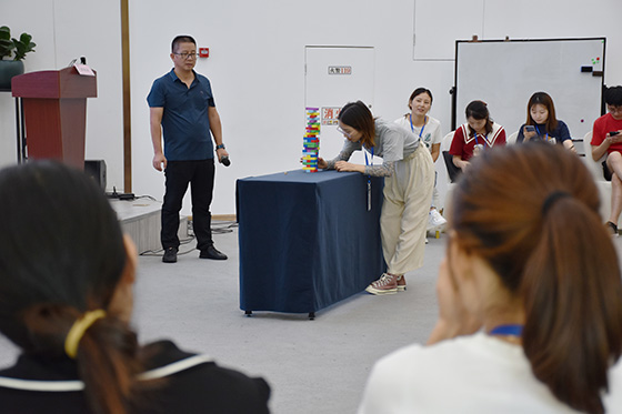 過程中,羅家永老師親自帶領、手把手教學,并且結(jié)合理論解釋游戲背后的深層涵義,同時鼓勵大家互相討論、積極提問,分享在游戲中的心得體會,活動現(xiàn)場氛圍濃厚、氣氛熱烈。在實操與督導環(huán)節(jié)中,羅老師一對一現(xiàn)場指導教學,提醒注意事項和操作要領,幫助學員們進行心理拓展活動的實操演練。